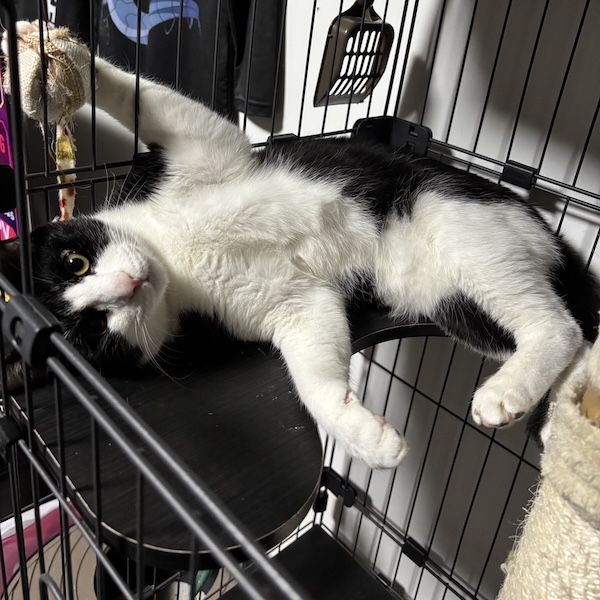 家族に迎えた当初から分離不安症の兆候があり、少しの外出でも鳴いてしまうほどでした。今では分離不安症も受け止めながら一緒に暮らしています。ハチワレくんたちと遊びたがってますが、力の加減が分からず逃げられることもしばしばあります。